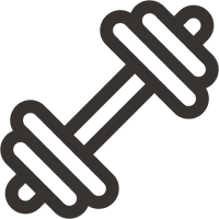 Indoor fitness room equipped with Technogym weights, a treadmill and yoga mats.